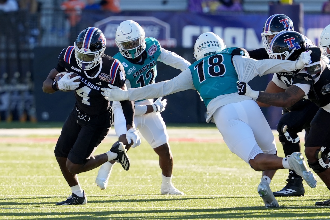 | Published: Jan. 11, 2026, 9:13 p.m.. Independence Bowl Football Louisiana Tech running back Clay Thevenin (4) evades a tackle attempt by CoastalĀ ...